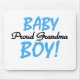 The proud grandma of a baby grandson who wants to announce it to the world will love these blue and black text design Proud Grandma T-shirts, buttons, mugs, bags, stickers, cards, and more!
