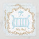 Highly stylized baby crib with mobile. Decorative Frame and Damask background. Easy to customize with your own text. Original copyright illustration by pj_design.