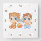 Baby Boy Twins Bear Jumpsuit 2 Square Wall Clock