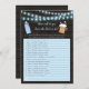 This is a How Well Do You Know the Dad-to-be baby shower game. String lights with blue baby bottle and frothy beer mug on dark wood background. Bottlecap "Baby" typography on back, along with templates.
