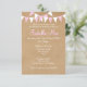 BABY BUNTING PINK BAPTISM CHRISTENING INVITATION. This pretty, rustic baptism, christening or first communion invitation features a kraft-paper-style background, pink and white bunting, and gorgeous script calligraphy with a pink drop shadow. The reverse features rows of pink and white bunting on a kraft-paper-style background. Designed by Pure Piglet© at www.zazzle.com/purepiglet*.
