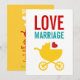 This charming modern baby shower invitation is great for the modern mama and their baby girl or boy (and their gender neutral baby shower!). The front says "Love, Marriage" and shows a baby carriage and the back says "Shower" with hearts falling into the carriage. Customize it with your shower's information. See all our coordinating items to make your shower picture perfect!