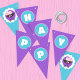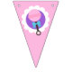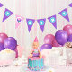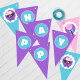Baby Doll Happy Birthday Hanging Pennant Bunting Banner in Purple, Pink and Teal Blue. Triangle Pennants. Perfect party addition for any little baby doll lover!