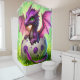 This shower curtain has a baby dragon on it.