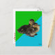 Baby Ducks on Grass Green and Sky Blue Postcard