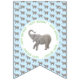 Bunting flags with images of adorable baby elephants. The background, image and text can be personalized. Original artwork by W.B.