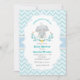 A cute, baby elephant with a flower garland is framed above a blue and white chevron pattern in this adorable baby shower invitation. (<a href="http://www.freepik.com/free-vector/blue-card-for-baby-shower-with-a-cute-elephant_1078100.htm">Designed by Freepik</a>). <br/><br/>The card is easy to customize with your wording, font, font colour, paper shape options and choice of six paper types.<br/><br/>Not exactly what you're looking for? All our products can be custom designed to meet your needs at no extra charge.<br/><br/>Simply contact us at askcottonlamb@gmail.com.<br/><br/>Coordinating products available: Just ask us! Baby Elephant sticker<br/>Baby Elephant Thank You Card