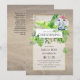 This pretty watercolor baby elephant and jungle greenery leaves themed Christening, Baptism invitation includes a wooden cross and text template fields on both sides, ensuring plenty of room for all your Catholic, Christian Baptism, Christening, Bautizo, Bautismo event needs including ceremony, reception, rsvp, directions and a brief program of the days events.