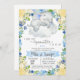 Boy blue and baby yellow flowers elephant baby shower invitation.