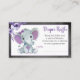 Baby Elephant diaper raffle ticket Purple Floral Enclosure Card