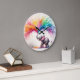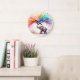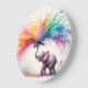 This baby elephant just discovered the joys of colour. Sucking up some paint in his trunk, he is blowing imagination into the world around him. Just look at the time! We better clean up this mess of colour.