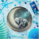 Cute baby elephant sleeping on a crescent moon with stars and clouds for Baby Shower.