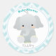 A cute, baby elephant with a flower garland is framed above a blue and white chevron pattern in this adorable baby elephant sticker. (<a href="http://www.freepik.com/free-vector/blue-card-for-baby-shower-with-a-cute-elephant_1078100.htm">Designed by Freepik</a>). <br/><br/>The sticker is easy to customize with your wording, font colour..<br/><br/>Not exactly what you're looking for? All our products can be custom designed to meet your needs at no extra charge.<br/><br/>Simply contact us at askcottonlamb@gmail.com.<br/><br/>Coordinating products available: Just ask us! Baby Elephant Invitations<br/>Baby Elephant Thank You Card