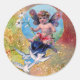 BABY FAIRY WITH DOVES IN SPARKLES yellow brown Classic Round Sticker