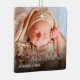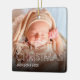 Modern childs first christmas ornament featuring 2 photos either side, the saying "my first christmas" in a modern white outline font, your babys name, and the year.