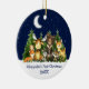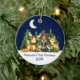 Baby's First Christmas Watercolor Woodland Animals Forest Animals Pine Trees Moon, Starry Sky and Snow Ceramic Ornament . Baby Animals include Bear, Deer, Moose, Raccoon, Bunny Rabbit, Fox and Owl with forest greenery. Add Name.