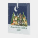 Baby's First Christmas Watercolor Woodland Animals Forest Animals Pine Trees Moon, Starry Sky and Snow Glass Ornament . Baby Animals include Bear, Deer, Moose, Raccoon, Bunny Rabbit, Fox and Owl with forest greenery. Add Name. Green Text.