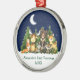 Baby's First Christmas Watercolor Woodland Animals Forest Animals Pine Trees Moon, Starry Sky and Snow Ornament . Baby Animals include Bear, Deer, Moose, Raccoon, Bunny Rabbit, Fox and Owl with forest greenery. Add Name.