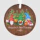 Baby's First Christmas Watercolor Gnomes with Christmas Presents and Pine Trees Ornament. Rustic Country Wood and String Lights. Add Name.
