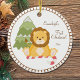 Enjoy your baby's first Christmas with this lion holding a candy cane sitting so cute in front of the tree. A template has been made to personalize name and year!