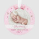 Celebrate the joy of your baby's first Christmas with our Elegant Baby's First Christmas Ornament. This charming keepsake features a beautifully painted pink watercolor bow adorning the top, adding a touch of elegance and sweetness to your holiday decor. Designed as a cherished memento, the ornament includes a special place to add your baby's photo, making it a personalized treasure. You can also include your baby's name and the year, creating a timeless keepsake that captures the magic of this milestone moment. This adorable ornament is the perfect way to commemorate your baby's first Christmas and will be a cherished addition to your holiday decorations for years to come. Original artwork and design by © Moodthology Papery.