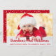 Modern Red Script Baby First Christmas Photo Card - Red and Snow Back
