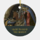 Religious Christian Catholic Baby's First Christmas Nativity Custom Family Photo Ornament, created with the religious painting Mystic Nativity (c. 1500) by Sandro Botticelli, an Italian Renaissance painter. It depicts the Nativity Scene featuring the Birth of Jesus Christ at the Bethlehem manger with the Blessed Virgin Mary and Saint Joseph, Angels and Shepherds. You can personalize the baby family photo and the text.