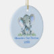 Baby First Christmas Watercolor Elephant Blue Ceramic Ornament