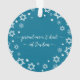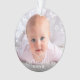 “First Hanukkah.” A playful visual of white Stars of David, snowflakes and handwritten script typography with customized year, overlaying the photo of your choice, help you usher in Hanukkah and New Year. On the back, additional white Stars of David, snowflakes and handwritten typography with “proud mom & dad of baby’s name” overlay a teal blue background. Feel the warmth and joy of the holiday season whenever you use this stylish and modern personalized photo keepsake ornament. Perfect for the newly proud parents!
