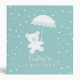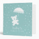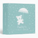 Custom binder / baby's first year album or pregnancy journal suitable for baby boys, girls or twins, featuring a cute illustration of teddy bear holding an umbrella an white little hearts on blue (colour can be changed).