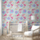 Cute Baby Flamingos Tropical Greenery Pattern peel and stick wallpaper. Fun pastel pink flamingos, baby blue elephants, butterflies and sprigs of leafy greenery. Get ready to transform your kids bathroom, baby nursery or accent wall into a cool coastal retreat. A great and easy way to transform your home with a stylish designer look perfect for a beach themed room or any space which needs a lively conversation piece. When it's time for a change to something fresh, this product removes easily with no residue so you can update your look as often as you like!