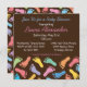 The pitter-patter of colourful baby footprints decorate this invitation. Easy to customize. Great for any gender. Original illustration by pj_design.