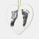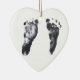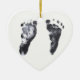 Heart ornament with baby footprints on one side and your baby's name on the opposite side.