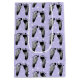 Ink smudged newborn baby footprints on purple and white polka dot pattern.