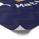 Nursery artwork featuring an illustration of a baby fox inside a wreath decorated with an acorn, leaves, and flowers. Background is dark blue chevron pattern. Personalize the name.