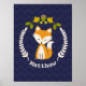 Baby Fox Wreath Personalized Nursery Artwork - Boy Poster