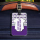 Oversized elegant argyle pattern in school colours of purple and silver grey set the backdrop for this cute baby ID tag design. A white baby bodysuit on the front states that you have the best baby ever, while the back includes your child's name and parents' contact information. Design comes in maroon and grey, burnt orange and grey, red and black, green and black, orange and navy, green and yellow, and purple and grey. Matching products available.