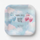 The cutest baby gender reveal paper plates in pink and blue colours for a fun guess if the expected baby is a boy or a girl.