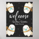 Baby Ghost Halloween Fall Baby Shower Welcome Sign. Cute Halloween theme baby shower Welcome Sign Party template featuring an illustration of a ghost baby with blue pacifier, a orange scarf on and stars. The text feature is "Welcome." perfect for both boy and girl baby expected in fall