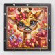 This enchanting square wall clock features a heartwarming digital illustration of a wide-eyed baby giraffe. The giraffe is adorned with a large, sparkling pink bow and is surrounded by an abundance of festive Valentine presents wrapped in colorful paper and satin ribbons. The scene is filled with glowing heart shapes and delicate floral accents, set against a warm, shimmering background that radiates love and joy. The artwork is framed by a modern black wood-grain border with bold white numeric markers for easy and clear timekeeping. This functional piece of home decor is a perfect gift for animal lovers, Valentine Day celebrations, or as a charming addition to a child bedroom or nursery. The rich detail and cheerful character design make it a standout decorative focal point for any wall.
