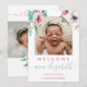 Announce the arrival of your beautiful baby girl with these lovely watercolor floral birth announcement cards!