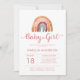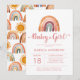 Earthy tone modern watercolor boho rainbow girl baby shower invitations