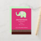 Birth announcement for baby girl, featuring illustration of baby elephant and polk-a-dots.