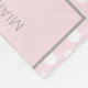 Cute baby girl birth announcement keepsake fleece blanket with an adorable elephant holding a pink and silver glitter balloon on a white polka dot background. Customize with your child's name, date of birth, weight, and length. This blanket would be so cute displayed on the wall of your infant's nursery.