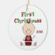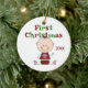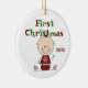 An adorable baby stick figure girl and red and green text that reads "First Christmas" on an ornament you can change the year on. Makes a great 1st Christmas gift for the baby girl you know!
