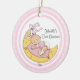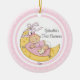 Baby's First Christmas Ornament features a sweet baby girl sleeping on a moon set on a pink polka dotted background! Personalize with your baby information and date and you're all set to go! Wonderful dated keepsake gift for your baby's 1st christmas.