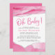 When family and friends can't be together, celebrate the mother-to-be across the miles with a virtual online baby shower. This fresh and chic girl baby shower invitation features "Oh Baby!" in a stylish pink script and watercolors of pink agate geodes with veins of faux silver glitter.