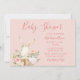 Baby Girl Pink Script Cute Elegant Bunny Baby Invitation