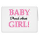 The proud aunt of a baby girl niece will love our Proud Aunt Baby Girl buttons, t-shirts, tote bags, cards, magnets, and other items with pink text!