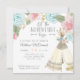 Mint green reverse side can be changed to match your colour palette. Square Format for a unique, stand out baby shower invitation theme. Hand painted in watercolor by artist and designer, Audrey Jeanne Roberts. Painterly pastel blue and pink roses with a boho teepee and typography text "let the adventure begin." Copyright, Audrey Jeanne Roberts.